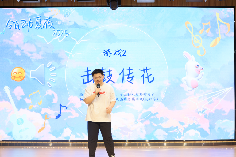 你画我猜,师生默契挑战,趣味十足,笑声不断;击鼓传花,奖惩之间,扣人心弦。