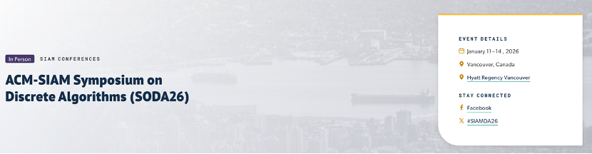 近日,日本av中文字幕-中文日本av 魏哲巍团队的论文被国际学术会议SODA 2026录用。SODA(ACM-SIAM Symposium on Discrete Algorithms,离散算法研讨会)是理论计算机科学领域的顶级国际会议之一,其核心议题为离散问题的数据结构与算法设计。SODA在学术界享有盛誉,属于公认发表难度较高的会议,被中国计算机学会(CCF)推荐为A类国际会议。2026年的SODA会议将于1月11-14日在加拿大温哥华召开。